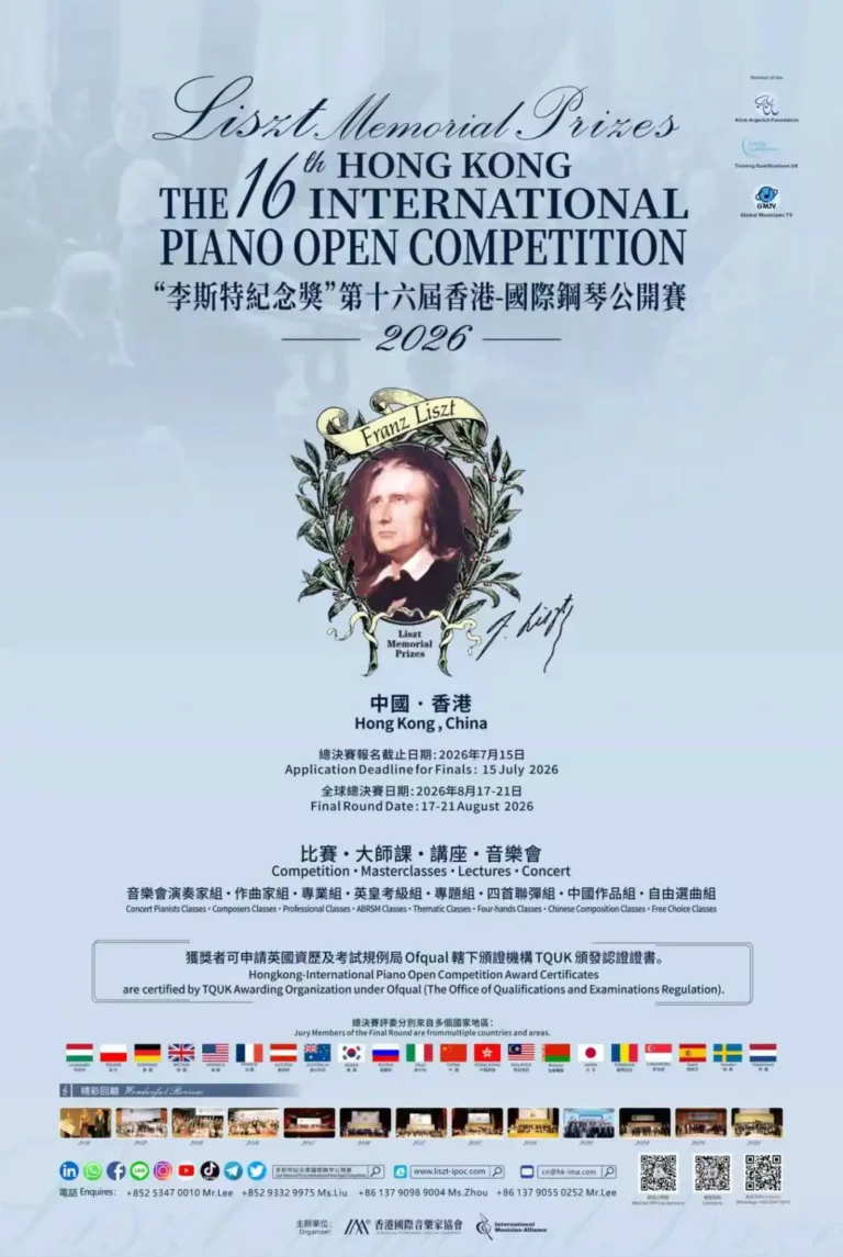 自2011年为纪念李斯特诞辰200周年创办以来,这项每两年一届的赛事已成为国际古典音乐界极具影响力的权威平台,获 AAF 国际赛事基金会与英国 TQUK 双重认证,证书获全球多个国家资历架构认可,是音乐深造的”黄金门券”。