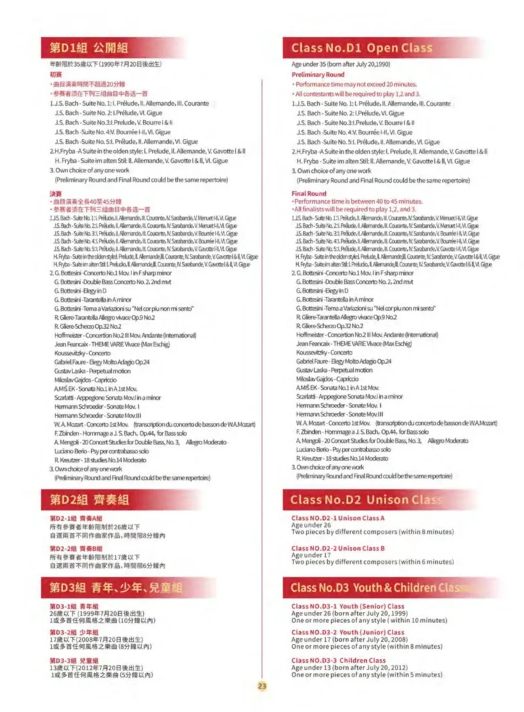 DOUBLE BASS·低音提琴組別及曲目 | 2025第七屆香港-國際弦樂公開賽